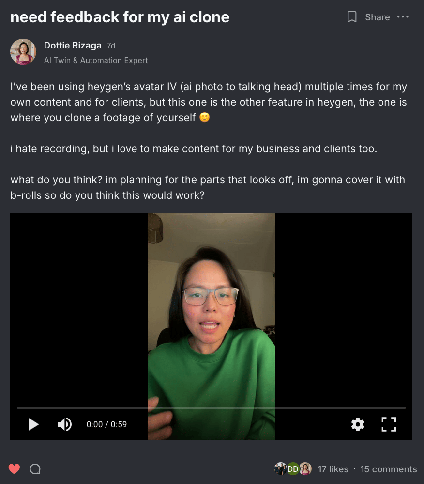 π½οΈ Video of the Week: We Tested Claude Cowork for a Week. Here Are the Results... When Anthropic released Claude Cowork, they set the internet aflame, with many claiming that it was the closest thing to AGI we've seen yet, and many others saying it was yet another overhyped AI tool. So which one is it? Well, we decided to take matters into our own hands, with The AI Advantage team spending a full week testing various Claude Cowork use cases. βIn this video, Igor breaks down what worked and what didn't in our testing. If you've been wondering exactly how you should be using Claude Cowork, this is the video for you! π€ Discussion of the Week: Dottie Impresses with Her AI Clone This week, community member Dottie shared a fully AI-generated video clone of herself, explaining that she hates recording but loves creating content and has found this to be a great way to stay visible without burning out. Her post asked for feedback on her AI clone, and the community delivered! Members chimed in with encouragement, helpful critiques, and thoughtful discussion about authenticity and how we use AI in our content. This is exactly what we built The AI Advantage community for: a place to learn, experiment, and get real support from people on the same journey. βJoin the conversation! Sign up for the AI Amplifier Club for $1 for your first 30 days.β That's all for this week! See you next Thursday. Much Love, Follow The AI Advantage: Written By:β |